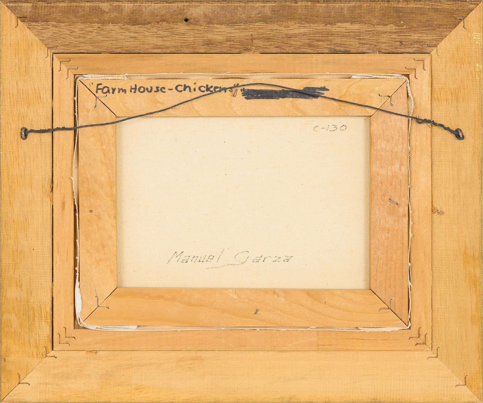| Description | Manuel Garza (b. 1940), “Farm House Chickens”, oil on canvas |